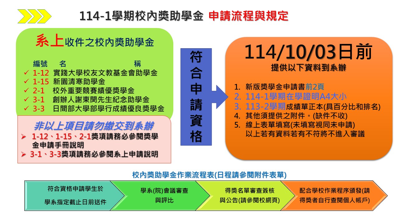 114學年度第1學期-校內獎助學金申請 -系所收件通知
